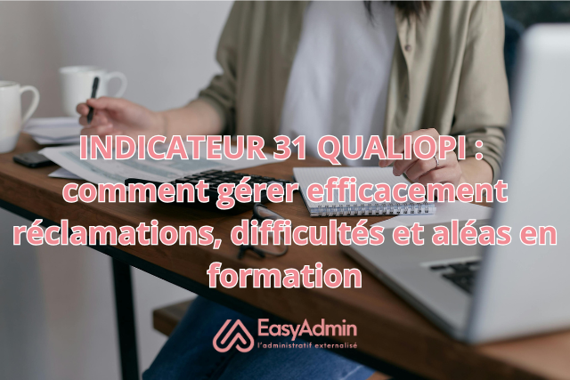 L’Indicateur 31 Qualiopi oblige les organismes de formation à gérer efficacement les réclamations, difficultés et aléas. Beaucoup peinent encore à structurer ce suivi et à mettre en place un process clair. Rassurez-vous, chaque étape peut être organisée facilement pour réagir rapidement et efficacement. EasyAdmin vous explique, pas à pas, comment rester conforme à l’Indicateur 31 Qualiopi et garantir la satisfaction de vos participants.